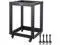 STURDY: 4-post construction, heavy-duty, SPCC cold-rolled steel can safely support up to 600 lbs of rack mounting equipment with leveling feet, and 500 lbs with casters. The black RAL9005 powder coat finish makes this 12u rack resistant to scratching and rusting