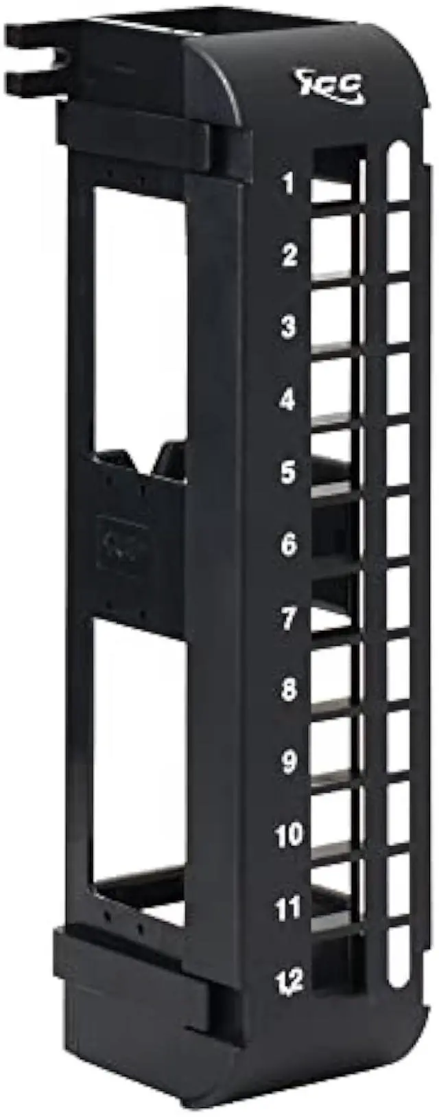 BRACKET: Designed to mount on walls, vertically or horizontally, this patch panel measures 10 H x 3.30 W (including mounting tabs) x 2.80 D and includes an 89U bracket for enhanced cable management. The bracket offers deeper depth for better cable routing and organization in tight spaces. Mounting wood screws are not included.