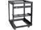 *STURDY: 4-post construction, heavy-duty, SPCC cold-rolled steel can safely support up to 1300 lbs. 600kgof rack mounting equipment with leveling feet, and 700 lbs. (320kg) with the casters. The black RAL9005 powder coat finish makes this 9u rack resistant to scratching and rusting.