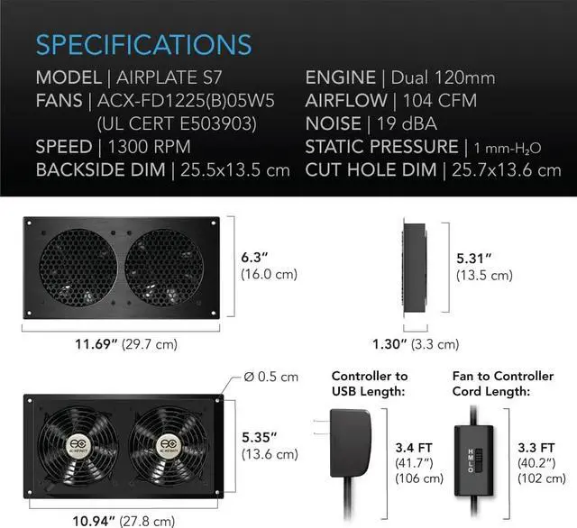 Features a multi-speed controller to set the fans speed to optimal noise and airflow levels.