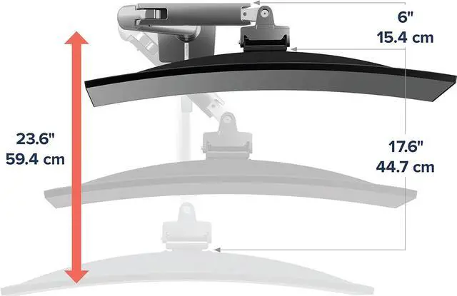Multiple mounting options: Includes arm, extension, monitor pivot, mounting hardware; two-piece desk clamp for surface edges 0.4 to 2.6 inches thick and grommet mount for installation through a surface hole
