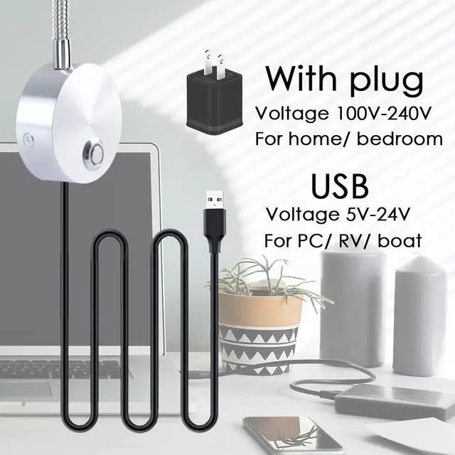 [Directional Lighting] - Designed with the 13 inches flexible goose neck, reading lamps for bed can be easily adjusted to the angle you prefer, providing you with enough lighting for different reading posture.