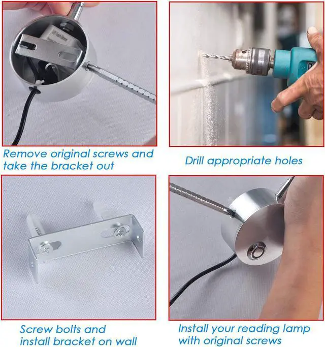 [Minimalist Design] - You can install the wall mount reading lamp at the wall, headboard or cabinet surface, which doesnt occupy the space to give you a clean and neat surrounding. And then you just need to need to connect the plug of 1.7 m cord to the power socket and the book lamp will start working.