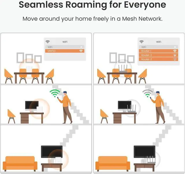 Seamless Roaming for all Every unit works together for a truly seamless online experience with a single network name and password. Most Wi-Fi enabled devices automatically connect to the strongest AP node when moving around your home.