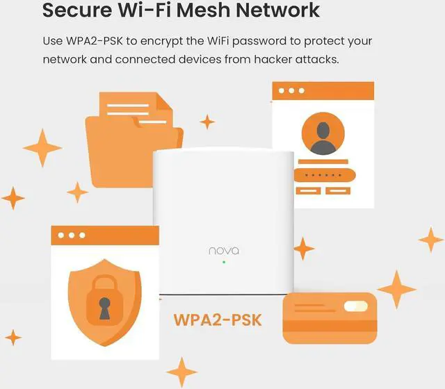 Secure Wi-Fi mesh Network Use WPA2-PSK to encrypt the WiFi password to protect your network and connected devices from hacker attacks. Welcome your visitors and friends with a guest network in isolated network zone, and guards your privacy and smart home access.