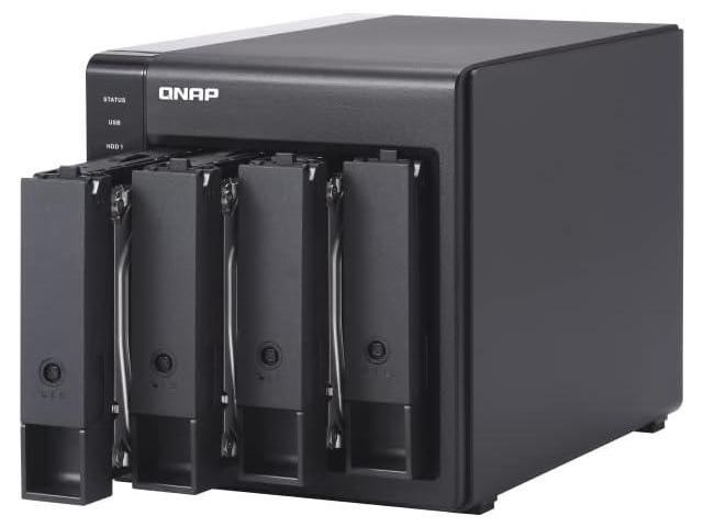 - Lockable drive Bays. NOTE : The TR-004 does not support the following: the TS-128, TS-228, TS-131, TS-231, TS-431, TS-431U, and NAS models that cannot be updated to QTS 4.3.6 (or later). The TR-004 can only be used as an individual storage pool or volume on the NAS. Its storage pool/volume cannot be combined into the connected NAS. NAS applications cannot be installed on the TR-004. Drives can only be migrated from one TR-004 to another TR-004. The files and data stored on drives moved to/from a NAS (or another device) will not be recognized.