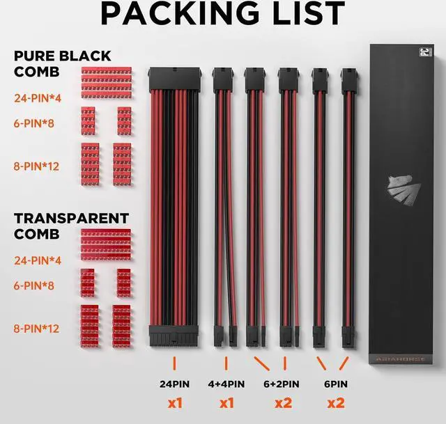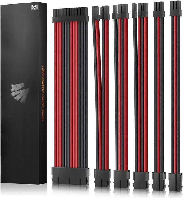 Pc Cable Extension Kit1x24 Pin ATX Extension Cable (for Motherboard), 1x (4+4) Pin EPS Cable (for CPU), 2 x 6+2-Pin PCI-e Cable and 2 x 6-Pin PCI-e Cable (for GPU), supplied two sets of cable combs, compatible with all power supply cables (must be connected to the power cable, not to the power supply)