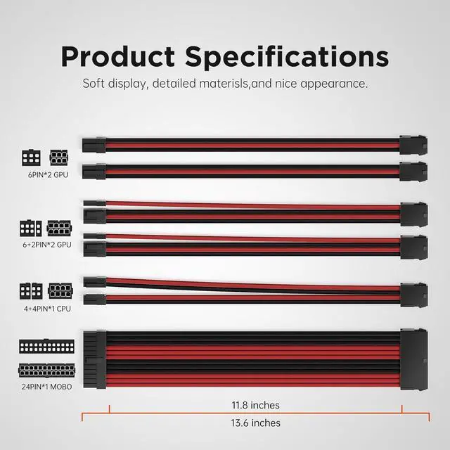 Cable Management SimperComes with two sets of combs: White and black with a length of 30cm, this psu cables are easily solving the problem of insufficient length of the original wires and beautifying the internal space of the case.