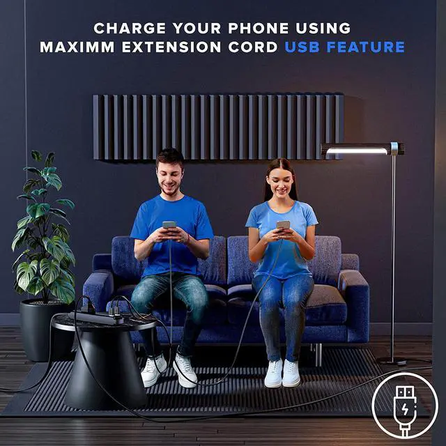 MULTIPLE PLUG OUTLET WITH USB PORTS. Maximm' s ultra thin flat extension cord features 2 usb outlet plug to charge and connect your USB devices such as laptop, smartphones, and tablets with three 3-prong female connectors extending your AC power outlet for your electrical appliances. An ideal outlet with usb ports that works both for household and office use.
