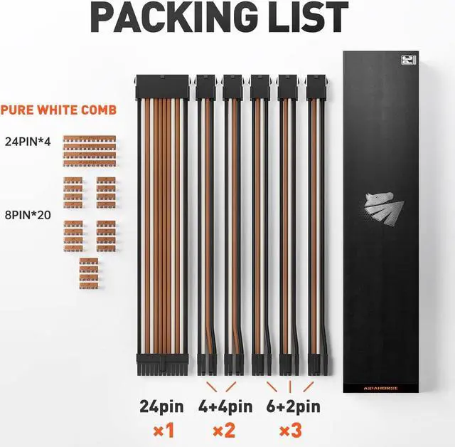 Support Double CPU MotherboardAsiahorse pc power cable contain 1 x 24 Pin ATX Extension Cable, 2 x 4 + 4 Pin EPS Cable for CPU extension cable, 3 x 8 to 6+2 Pin PCI-E Cable for GPU extension cable. 2 x dual 4+4PIN CPU power cables support Double CPU M/B for Two-way performance.