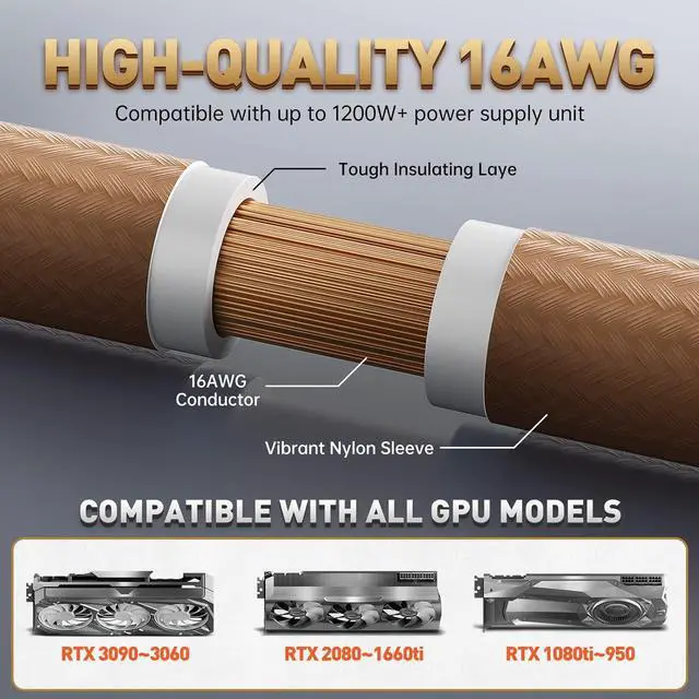 Upgraded 16AWGThis pc cable extension kit use UL1015 16AWG wire with higher copper content to support higher current output, which fundamentally solves the problem of power cord getting hot due to the use of high-power products.