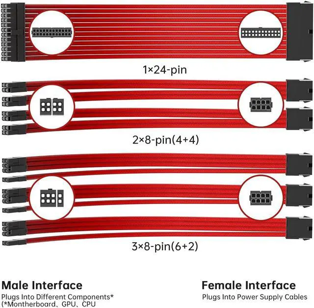 Ultra High Quality AssuranceNew power supply cable set is designed and manufactured with premium materials for better looks and sturdiness. A variety of colors are available for you to choose from, DIY your PC freely, match your computer host as you like, and make your computer unique from now on!