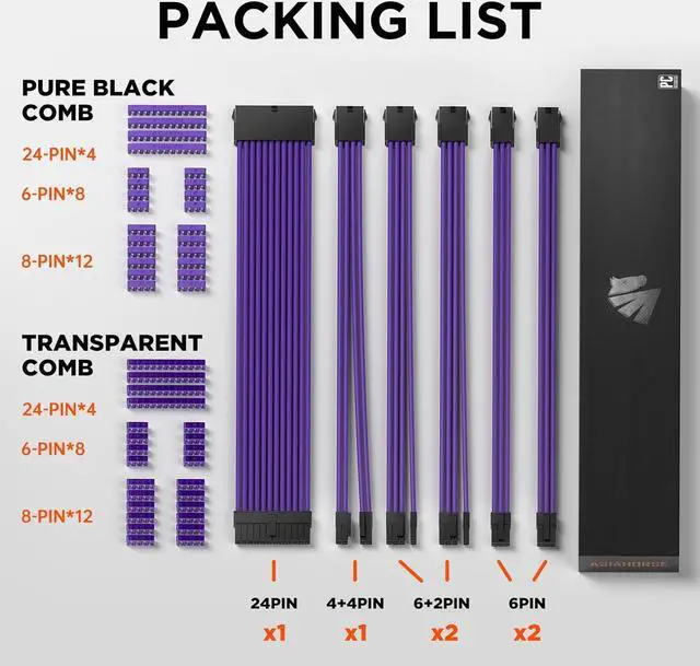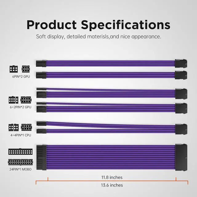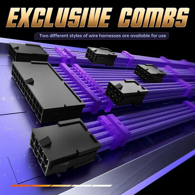 Cable Management SimperComes with two sets of combs: Black and transparent black with a length of 30cm, this braided psu cables are easily solving the problem of insufficient length of the original wires and beautifying the internal space of the case.