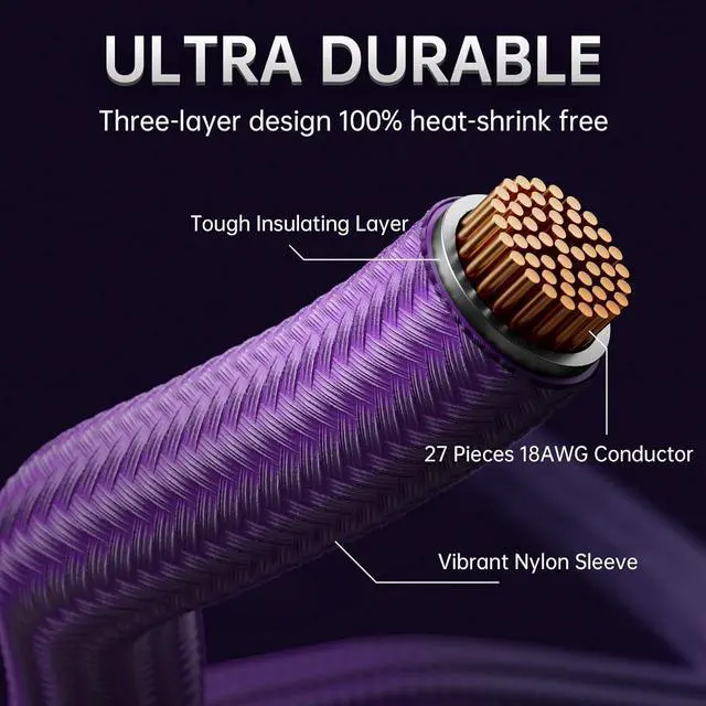 Extremely Soft MaterialThe latest Nylon Braid design, high-quality flexible and easy to organize vivid braid, while providing 4 combs per cable, allowing the cables to keep its shape over a long periods of time without worrying about sagging cables or high maintenance cable management.
