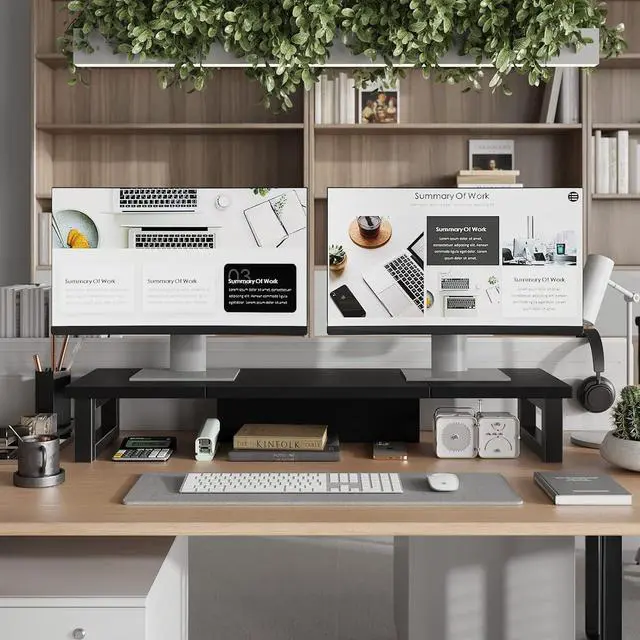 Multifunctional Monitor Riser The monitor stand has powerful storage function of keeping the table clean. It can be used as a monitor stand riser, printer stand, laptop riser, or a TV stand, makeup, animals. Extra storage space underneath organize your office supplies.