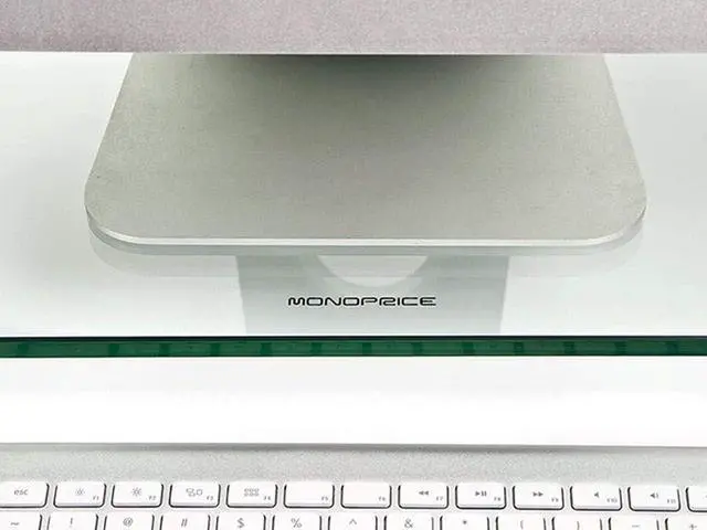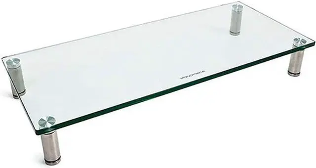 Monoprice Multimedia Desktop Stand 22 Inch x 9.5 Inch - Stand & Riser, Laptop Stand, Desktop TV Stand w/ Height Adjustable Legs - Workstream Collection, Clear