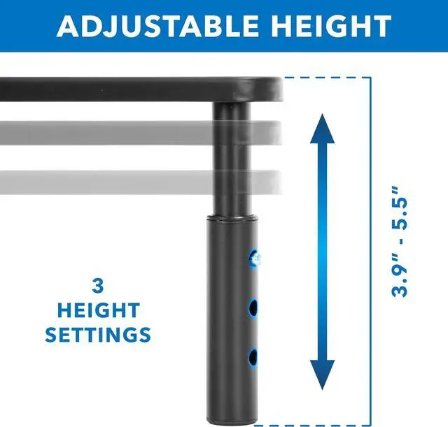 ADJUSTABLE HEIGHT FOR COMFORT: Tailor your desk setup to your comfort level with 3 adjustable height settings. A simple press-and-lift mechanism allows you to find your ideal viewing height, enhancing productivity and ergonomic support for long hours at your desk.