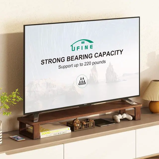 STURDY & STRONG BEARING CAPACITY: This long dual monitor stand made of high quality rubber wood, smooth and thick workmanship, unique construction makes it have strong bearing capacity (support up to 220LBS)