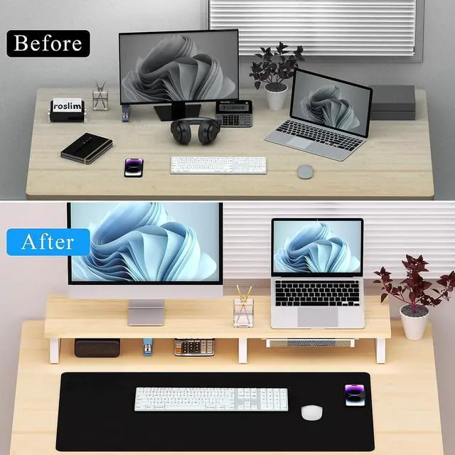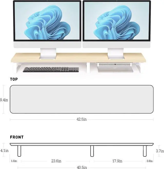 Reliable After-sales Service: Whether you work from home or in an office, this office desk dual monitor riser is an ideal choice. We care about your experience and feedback, if you have any problems please feel free to contact us. And if youre not satisfied with this monitor riser, return it for full no questions asked refund.
