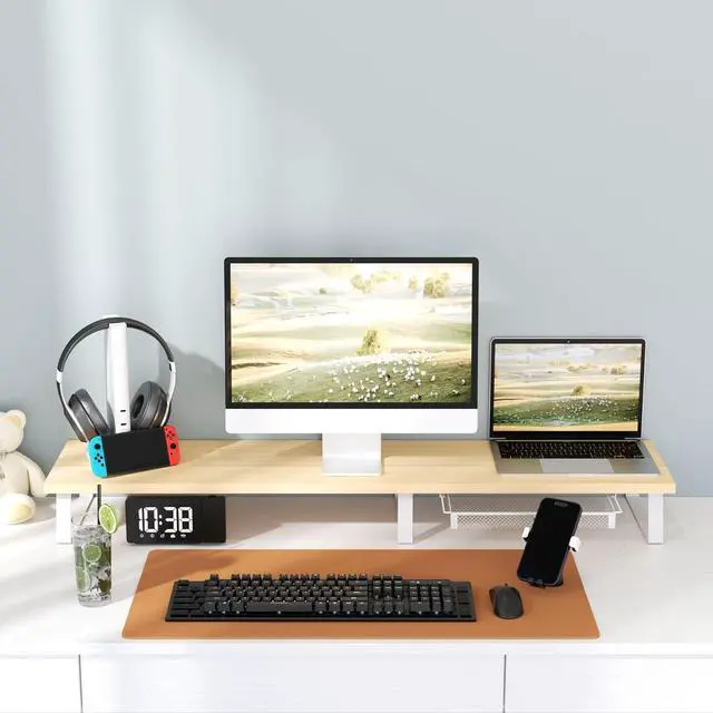 Ergonomically Designed for Neck Protection: In addition to providing support and storage, this computer monitor stand is also ergonomically designed to protect your neck and promote proper posture. By elevating your monitors to eye level, it helps reduce strain on your neck and prevents potential discomfort or injuries associated with prolonged screen time.