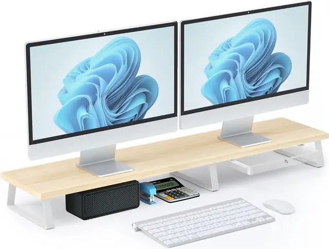 Sturdy and Durable Office Accessory: Made with sturdy materials, this office desk dual monitor riser is exceptionally durable. Whether you use it for two monitors or as a computer monitor riser, it can easily support the weight and maintain stability (With a maximum weight capacity of up to 50kg). It can also serve as a versatile stand for your printer, TV screens, laptops, etc.