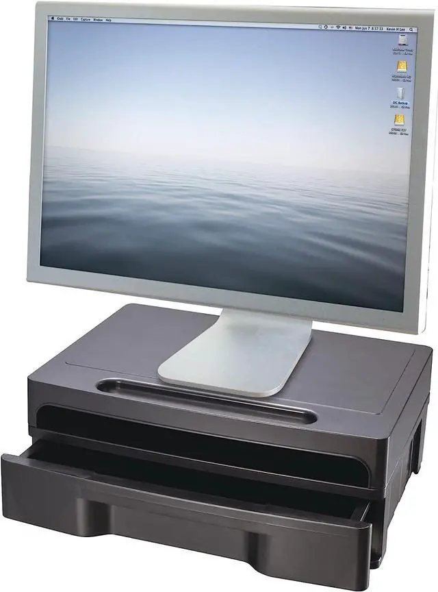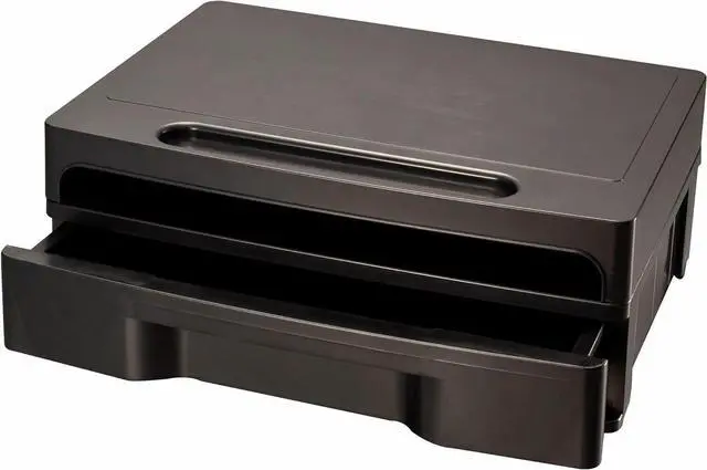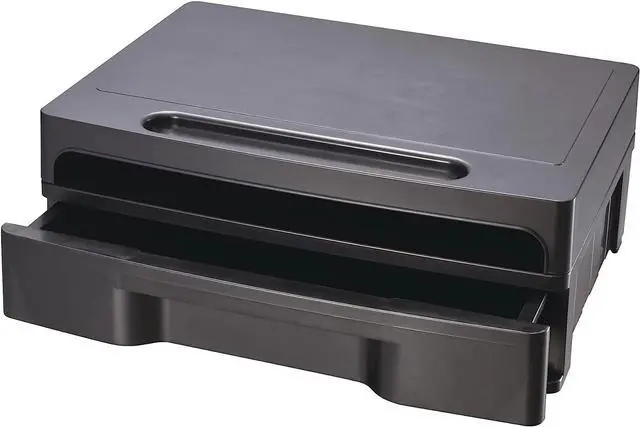 Holds a standard computer monitor at eye level for comfort Stand includes an optional drawer with removable divider for filing needs. Made from durable heavy-weight plastic for years of use. Coordinates with Officemate 2200 Series desk accessories.