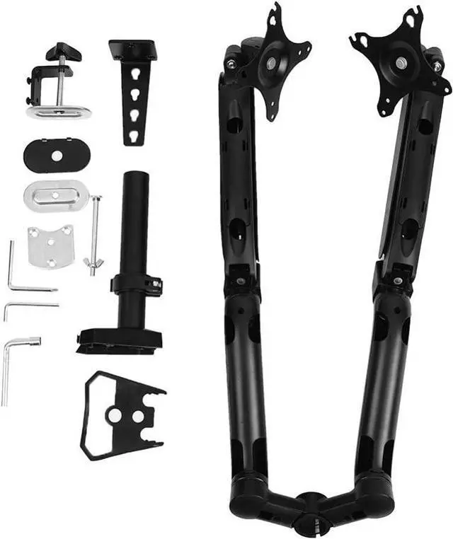 UNIVERSAL COMPATIBILITY: Compatible with most screens from 17-27 inches. The adjustable tension knob supports monitors weighing 4.4 - 15.4 lbs. This double monitor stand works seamlessly with monitor mounts for 2 monitors.