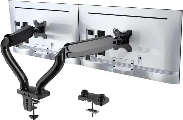 DE-CLUTTER YOUR DESK: This dual monitor arm holds monitors off your desk, freeing up valuable workspace with monitor stands for 2 monitors and dual monitor desk mount, helping you stay organized.