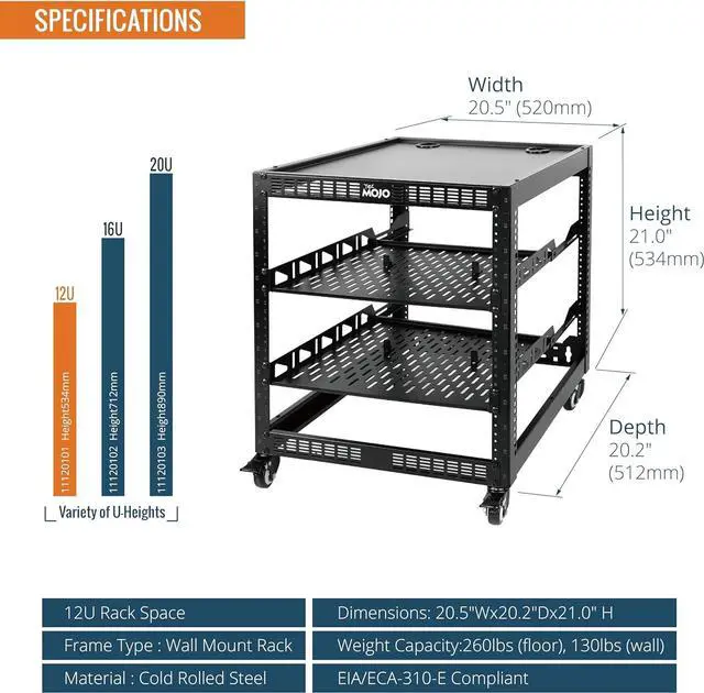 Sliding&ConsiderateOpen-frame layout, including four wheels easy to move, a top panel adding space, anti-slip shelf stops fixing devices and compatible racks for stack and expansion to meet requirements of home server rack