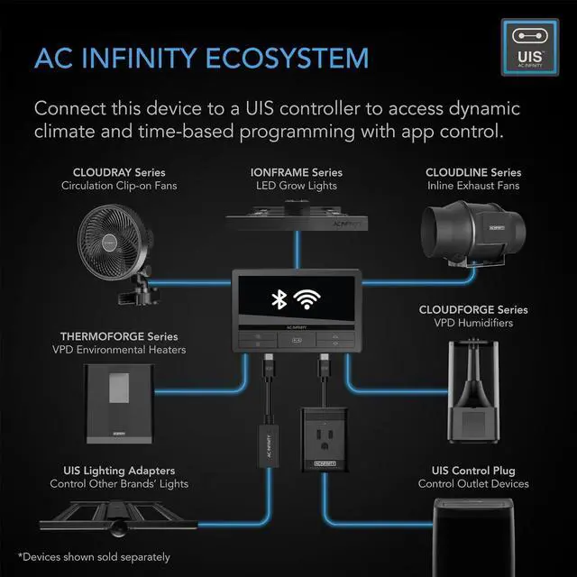 Links with UIS controllers for WiFi app control and access to climate triggers, timers, and advance automation.