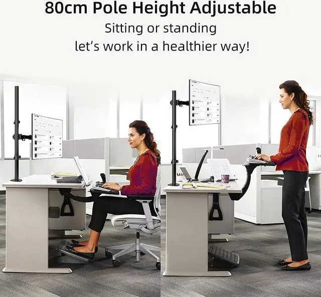 Fully aticulation - Rotate 360°, tilt ±90° up and down, swivel ±90° left and right, extra tall height adjustment along the center pole.
