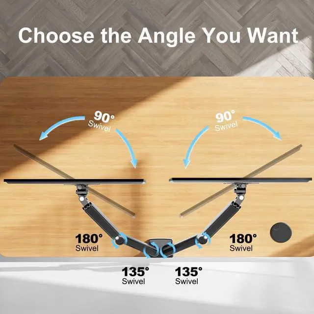Maximize Your Desk Space: Tired of a messy and crowded desktop? Our monitor mounts for 2 monitors can hold your 2 monitors on the monitor arm off the desktop stably, saving valuable space on your desk and making your workstation spacious