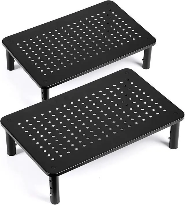 Ventilated Platform Increased Airflow Prevents Overheating monitor stand: Large sturdy platform with vented holes, this stand will prevent overheating and keep the device running cool. Our adjustable monitor riser is made of podwer coated steel with a perforated mesh hole platform that improves air flow going towards your device. The holes also help to prevent dreaded overheating and keep your computer cool and in peak working condition