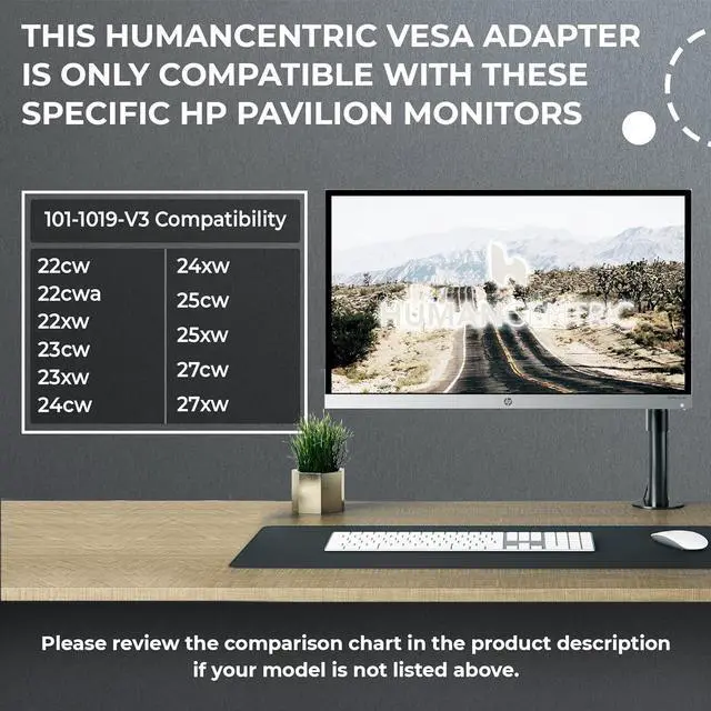 HP Pavilion monitors: This bracket is only tested and guaranteed to work with: HP Pavilion 22cw, 22cwa, 22xw, 23cw, 23xw, 24cw, 24xw, 25cw, 25xw, 27cw, 27xw