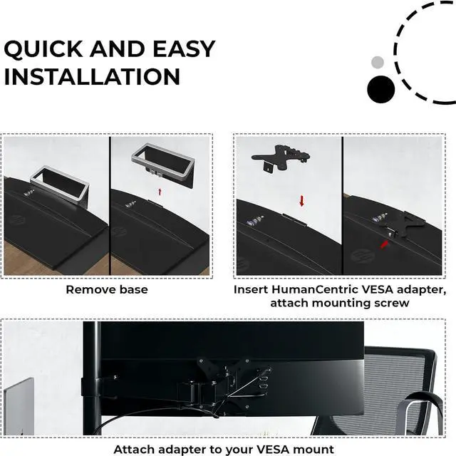 Quick and easy installation with hardware included: Youll be able to install this VESA adapter for your compatible Samsung monitor in only a few minutes with nothing more than a screwdriver. Just remove the existing base and screw ours in place instead. Then connect it to your VESA mount.