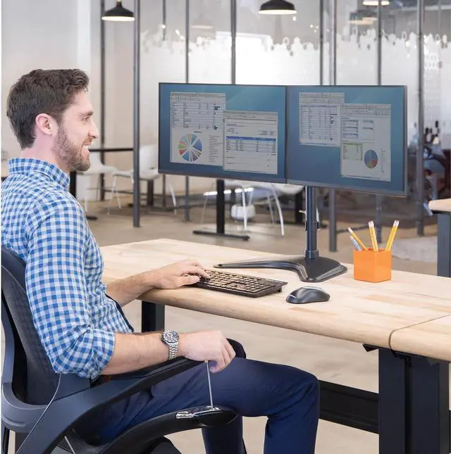 Free-standing design allows dual monitors to be used in spaces that do not allow a clamp or grommet mount