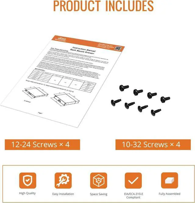 Easy Installation: 3U Drawer Rack Mount provides corresponding accessories 10-32 Screws×4, 12-24 Screws×4, instructions for reference