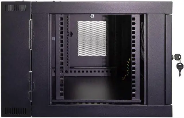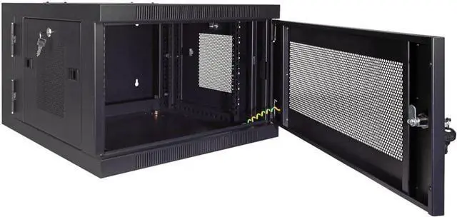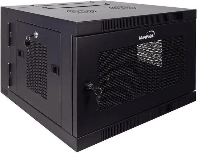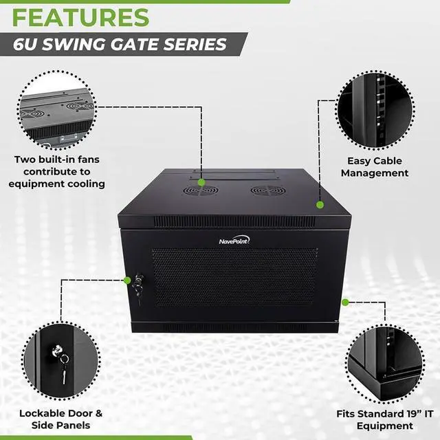 DURABLE - The 6U NavePoint Swing Gate Series network cabinet is constructed from robust cold-rolled steel, reinforced with a resilient black powder coating. Supporting a maximum weight of 150 lbs, it serves as a dependable solution for network and server equipment, perfect for long-lasting installations.