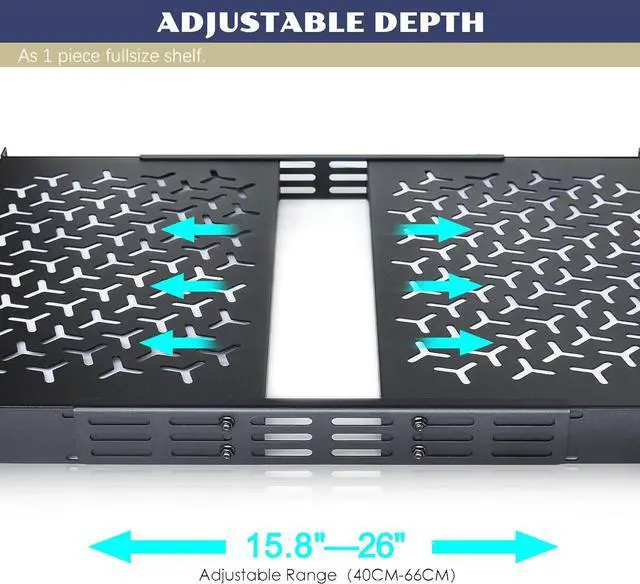 • Flexible Combo Design: Includes 2pcs rack shelves and joint brackets, enabling individual cantilever mounting or combining the two small cantilever shelves via brackets into a full-size shelf (19"W x 15.8"26"D x 1.77"H) to adapt to diverse storage needs.