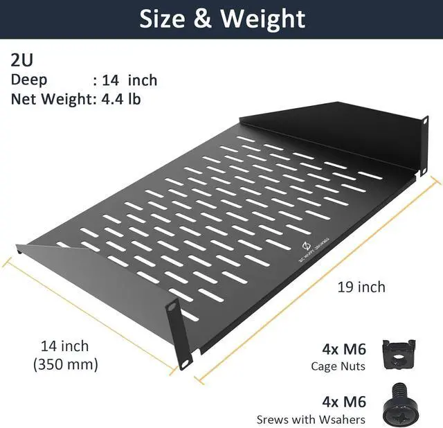 The ZC HAPPY ORANGES 2U ventilated server rack mounting bracket can accommodate almost any 19 inch server rack, with a depth of 14 inch (35cm)