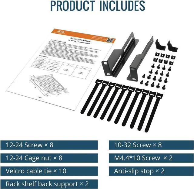 Easy to use: this 19" rack shelf is easy to install, with instructions or videos for reference; Accessories including installation kits, anti slip stop and cable tie, convenient for equipment protection and cable management