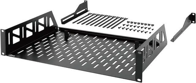 Sturdy: 19" W x 12" D x 3.46 " H, this 2U shelf is made from 1.5MM thickness cold rolled steel; Electrostatic powder coat preventing rust and corrosion; Reliable and durable