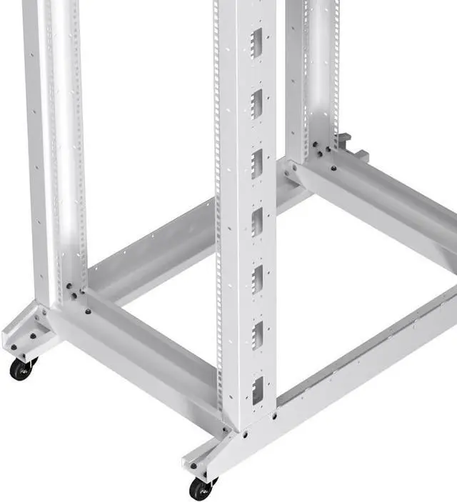 SPACE EFFICIENT & MOBILE - The NavePoint 00407332 42U four post open frame rack is designed for optimal space utilization in constrained areas. Its open structure ensures enhanced airflow, crucial for equipment cooling.