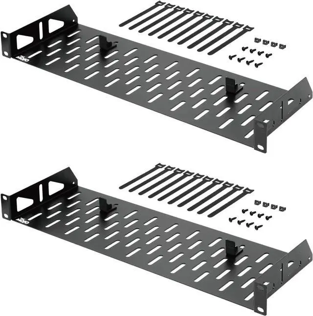Design Features: No lip design accommodate different devices; Anti-slip stops can fix and prevent equipment from slipping; Velcro cable ties are convenient for cable management