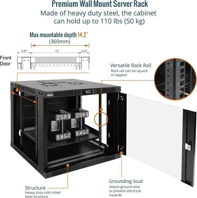 Space-Saving Design: Compact 9U wall mount rack ( 21.7 " W × 17.7 " D × 19.7 " H) with 14.2 " max mounting depthideal for networking, IT, AV, and surveillance system installations