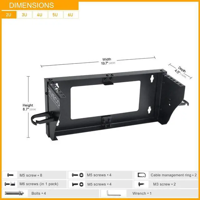 The wall mount rack fits 19-inch standard width equipment for network router, server, NAS, data, audio devices.Vertical & horizontal mountable, compact design for limited space application as a network rack, audio rack, NAS rack, AV server rack, or even power equipment shelf.