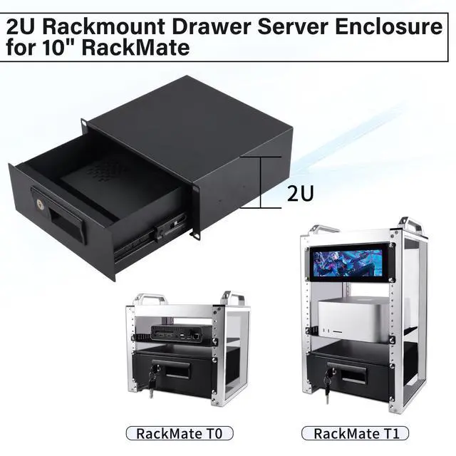 GeeekPi 10inch 2U Rack Mount Lockable Drawer, 7.87inch Depth Server Cabinet Case 10 Inch Rack Mount for DeskPi RackMate T1/T0 Server Cabinet