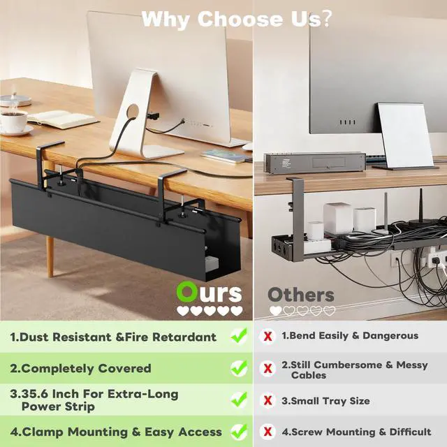 Compatibility: Fits 0.432.2 inch thick desks (metal/wood/glass); multi-functional (cord management/holders/organizers/baskets).