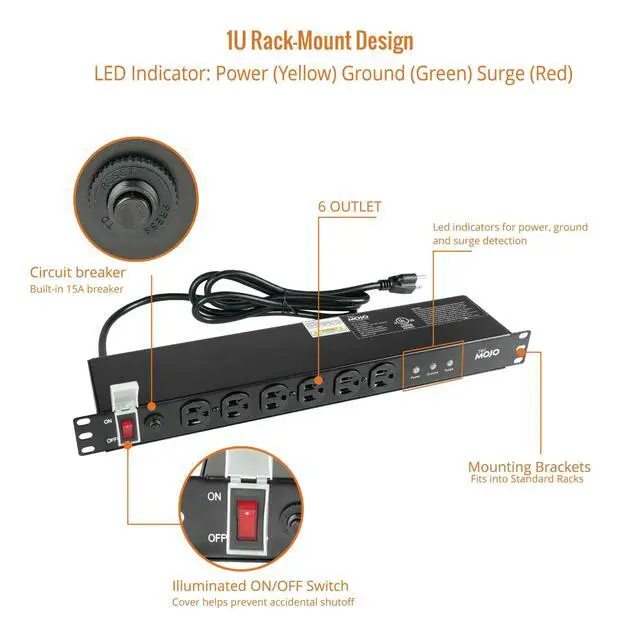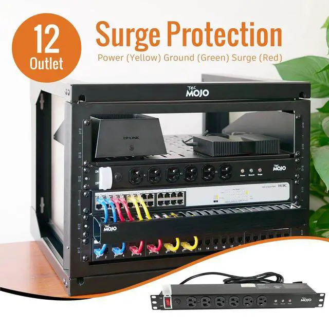 1U Rackmount Network-Grade PDU Surge Protector Power Strip