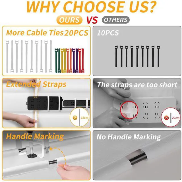 Under Desk Cable Management -Swipe Left to View the Packing List & Our vs Others